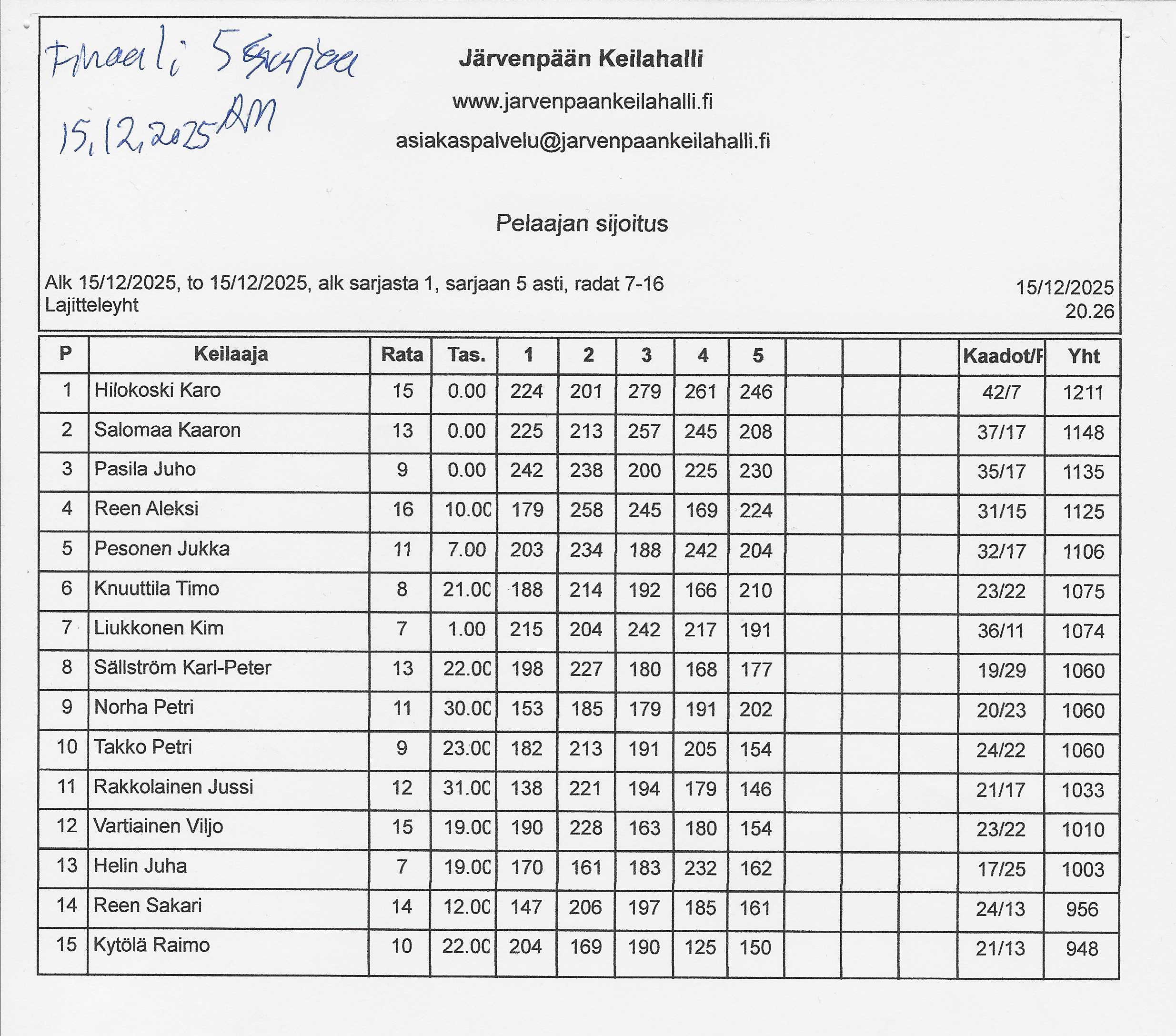 Syys 2. 07.10.2025-09.11.2025 Finaali ma 10.11 vko. 41-45 (Keilahalli)